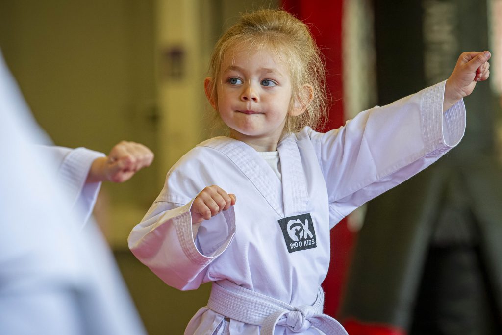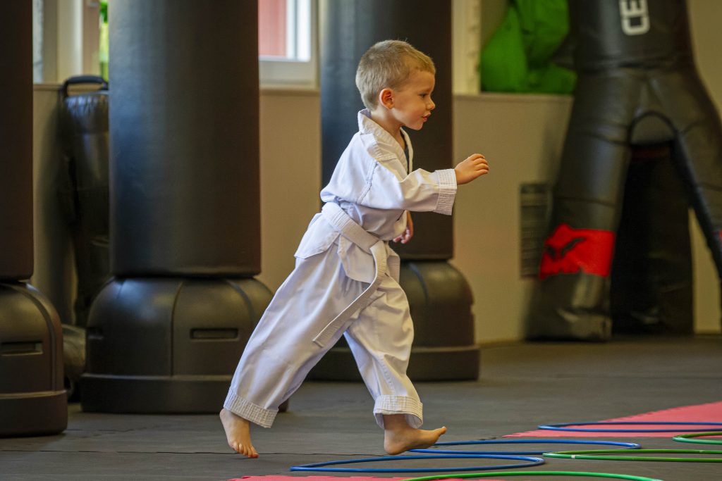 Die Kinder lernen spielerisch, sich auf ein Ziel zu konzentrieren und die Techniken zu kontrollieren. Dies wird risikofrei am Hütchen, bzw. Ball, geübt und später für die Stärke der Techniken an den Pratzen (Schlagpolster) trainiert. Erst wenn die Technik gut beherrscht wird, führen die Kinder sie zusammen mit einem Partner aus.